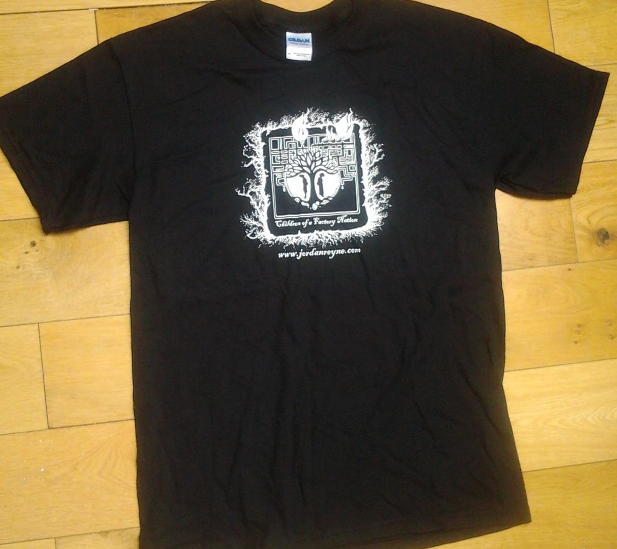 T-Shirt in white on black with the image from the cover of the upcoming album "Children of a Factory Nation".